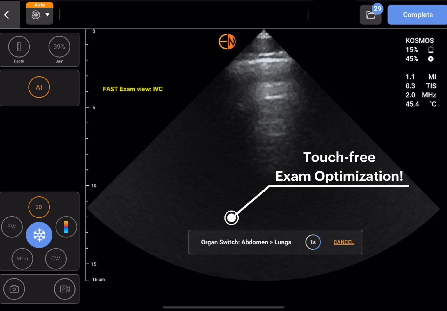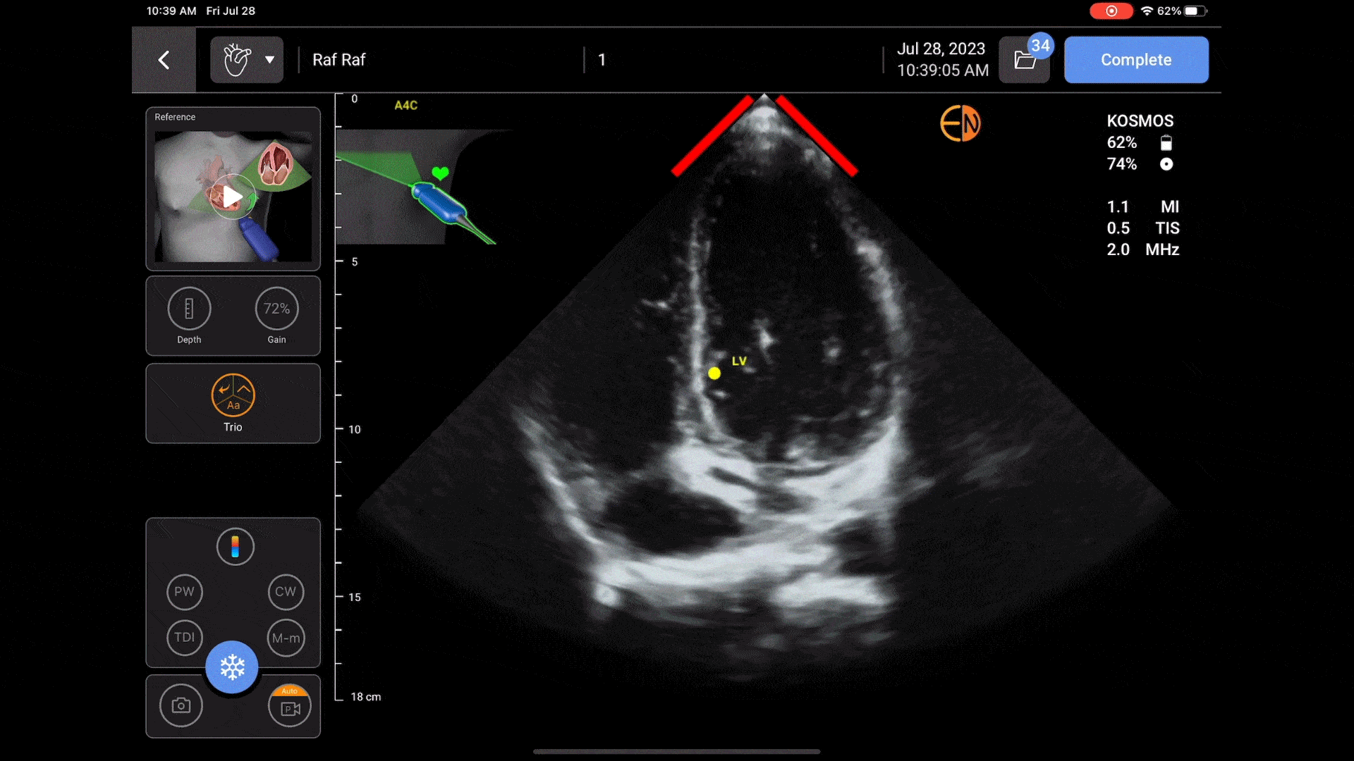 Inteligjenca Artificiale udhëzon operatorin në pozicionimin e sondës, ofron udhëzime për cilësinë e imazhit, njeh strukturat anatomike duke pozicionuar automatikisht etiketat dhe kaqizon imazhet në mënyrë të thjeshtë dhe automatike.